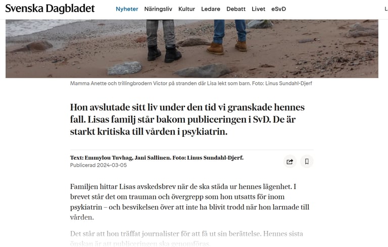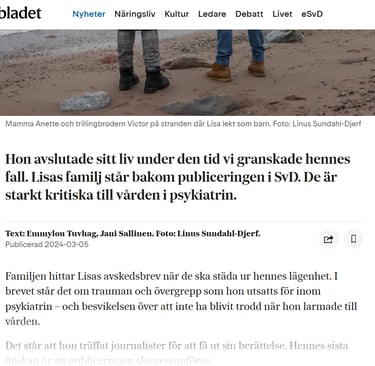 - ung tjej våldtagen i Danderyds sjukhus tog livet av sig, nämnde Jonathan Rosen i sitt självmordsbrev och önskade få artikeln publicerad.