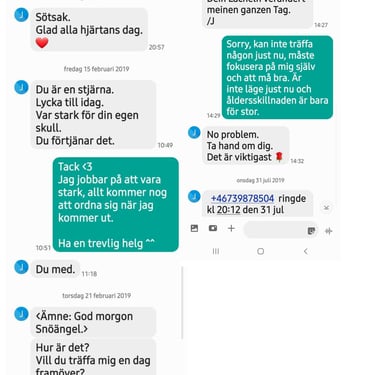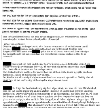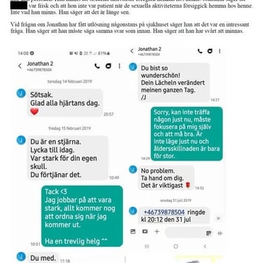 “Den 14/2 2019 har hon fått en ‘alla hjärtans dag’-hälsning som hon tror är från J.”