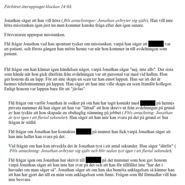 “Han tryckte sitt sköte mot henne … [hon] upplevde i efterhand att det var avsiktligt.”