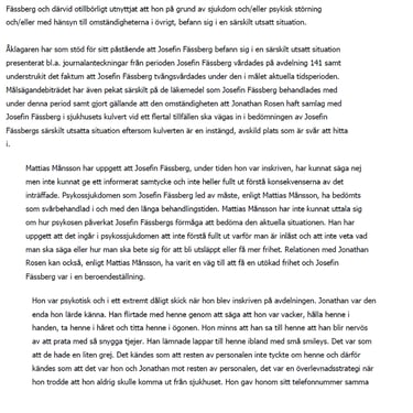 “Relationen med Jonathan Rosen kan också … ha varit en väg till att få en utökad frihet och [hon] var i en beroendeställning.”